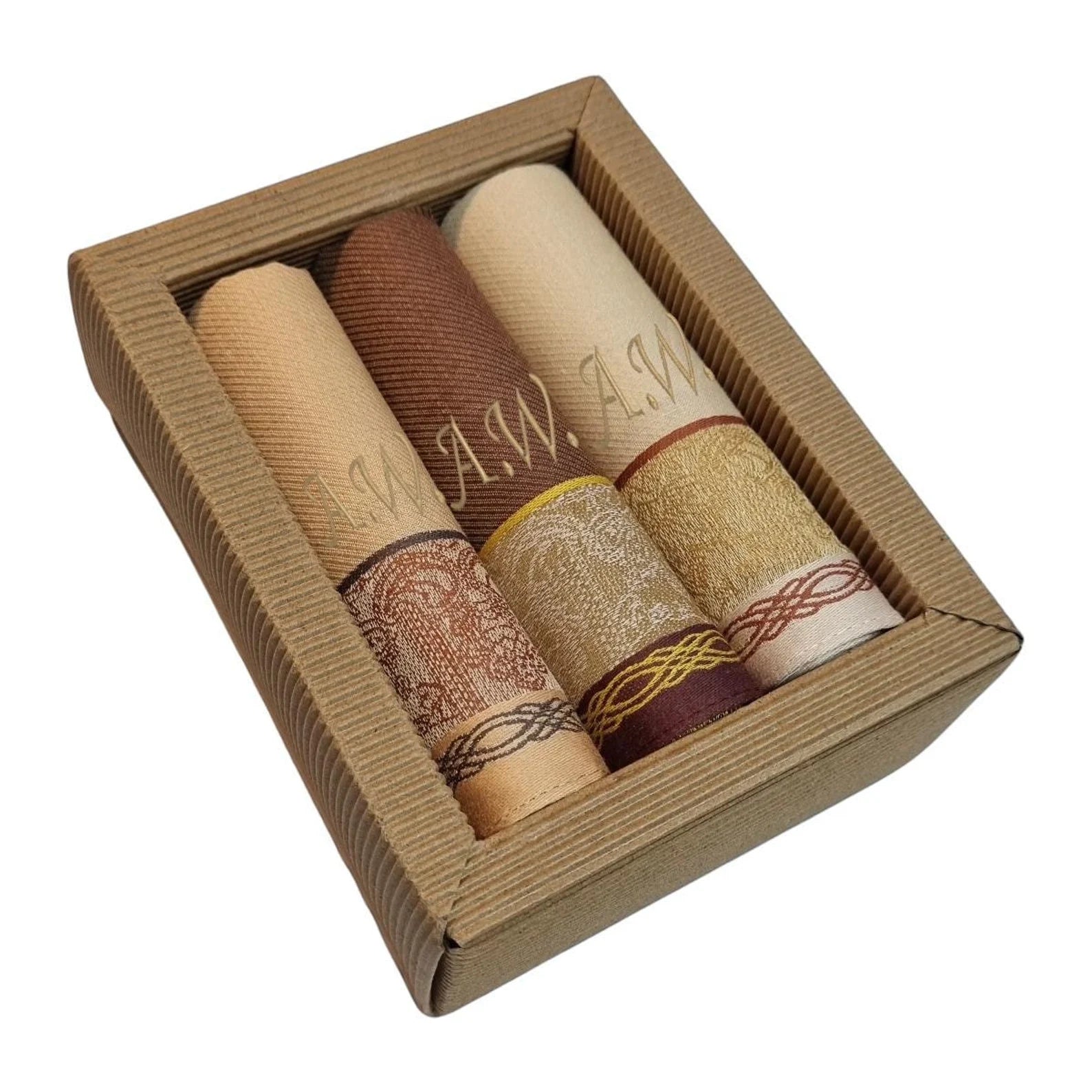 Das Set besteht aus 3 Taschentüchern, die in einer hübschen Verpackung geliefert werden, ideal als Geschenk für besondere Anlässe wie Hochzeiten, Geburtstage oder Jubiläen. Die Auswahl der Farbe für die Stickerei kann je nach Vorliebe des Kunden erfolgen – von schlichten Weiß- oder Cremetönen bis hin zu edlen Farbtönen wie Gold oder Silber. Ein solches Set eignet sich perfekt für Menschen, die auf Qualität und Stil Wert legen.
